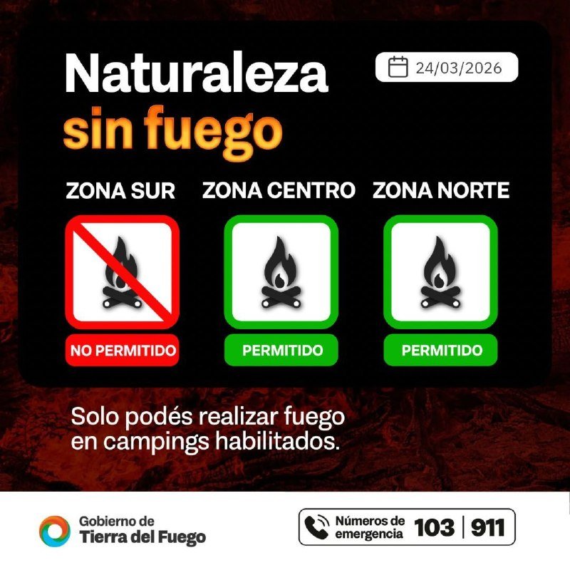 Tierra del Fuego AIAS Índice de peligrosidad de incendios: en Tolhuin y Río Grande se puede hacer fuego solo en campings habilitados, mientras que en Ushuaia rige la prohibición total