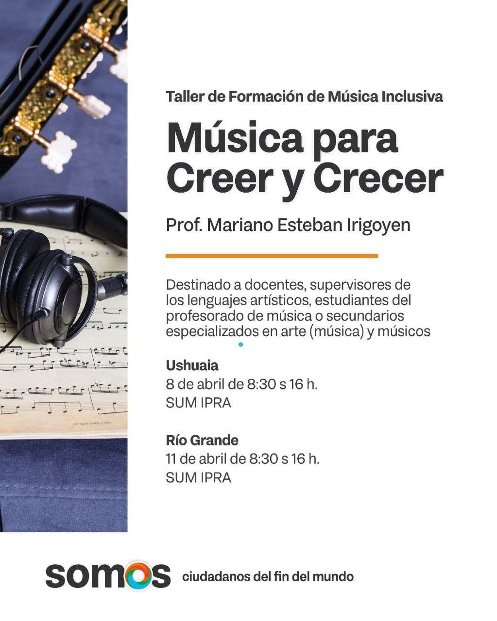 Taller de Música Inclusiva para Docentes: Educación ofrece capacitación con el músico Mariano Irigoyen en Tierra del Fuego