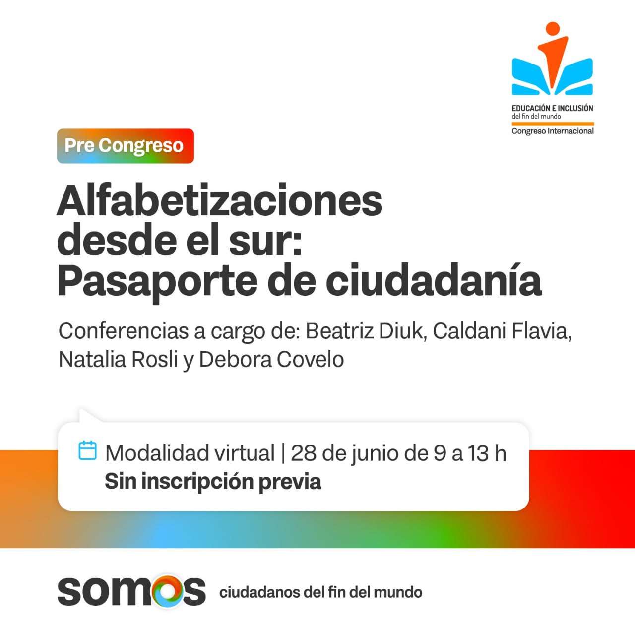El Gobierno de la provincia de Tierra del Fuego, AeIAS realizará este sábado 28 de junio el Pre Congreso de Educación e Inclusión del fin del mundo, “Alfabetizaciones desde el sur: Pasaporte de ciudadanía”, el cual se enmarca en la Octava Edición del Congreso de Educación e Inclusión del Fin del Mundo que se llevará a cabo en el mes de septiembre de manera presencial en la ciudad de Río Grande.