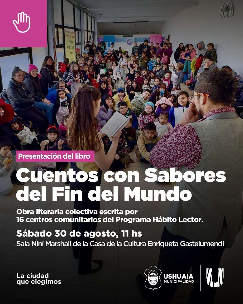 La Secretaría de Cultura y Educación de la Municipalidad de Ushuaia, a través del programa Hábito Lector “Cocineritos, Cuentos y Relatos”, presentará el libro “Cuentos con Sabores del Fin del Mundo” este sábado 30 de agosto a las 11:00 horas en la Sala Niní Marshall.