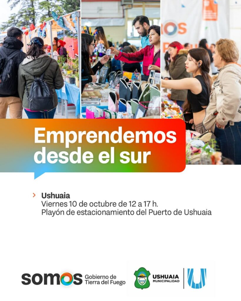 Una gran feria al aire libre reunirá a emprendedores de toda Tierra del Fuego. Encontrá productos únicos y apoyá la economía local. Entrada libre y gratuita. Inscribite como feriante. USHUAIА.- El próximo viernes 10 de octubre, el estacionamiento del Puerto de Ushuaia se transformará en un gran mercado al aire libre con la feria “Emprendemos […]
