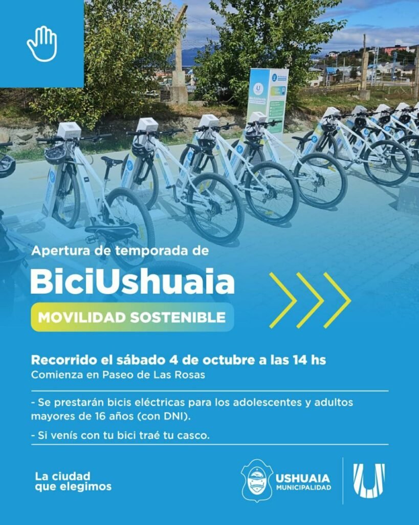 Este sábado 4 de octubre en el Paseo de las Rosas. Habrá bicicleteada comunitaria, juegos para niños y podrás probar las bicis gratis. Conocé las estaciones donde estarán disponibles. USHUAIА.- El Instituto Municipal de Deportes (IMD) lanzará la segunda temporada de BiciUshuaia este sábado 4 de octubre a las 14:00 horas en el Paseo de las Rosas con una jornada abierta a la comunidad que incluirá pruebas […]