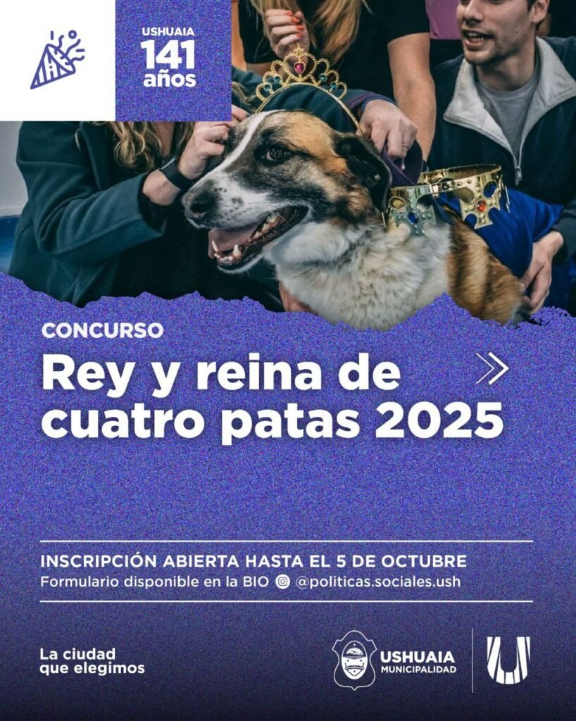 La Municipalidad impulsa esta iniciativa para promover la adopción y tenencia responsable. La votación será online del 6 al 10 de octubre, y los ganadores participarán del desfile aniversario. USHUAIA.- En el marco de los festejos por el 141° aniversario de Ushuaia, la Municipalidad abrió la inscripción para el tradicional concurso Rey y Reina de Cuatro Patas 2025, una […]