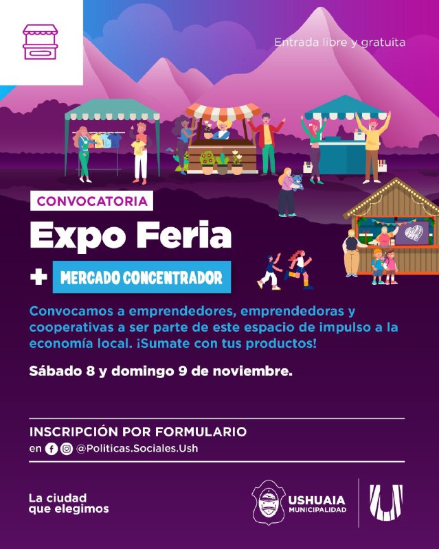 Ushuaia, octubre 2025 – La Municipalidad de Ushuaia, a través de la Secretaría de Políticas Sociales, Sanitarias y Derechos Humanos, abrió la convocatoria para todos los emprendedores, emprendedoras y cooperativas de la ciudad que quieran participar de una nueva edición de la Expo Feria y Mercado Concentrador. La cita será los días 8 y 9 de noviembre en el microestadio municipal “Cochocho” Vargas.