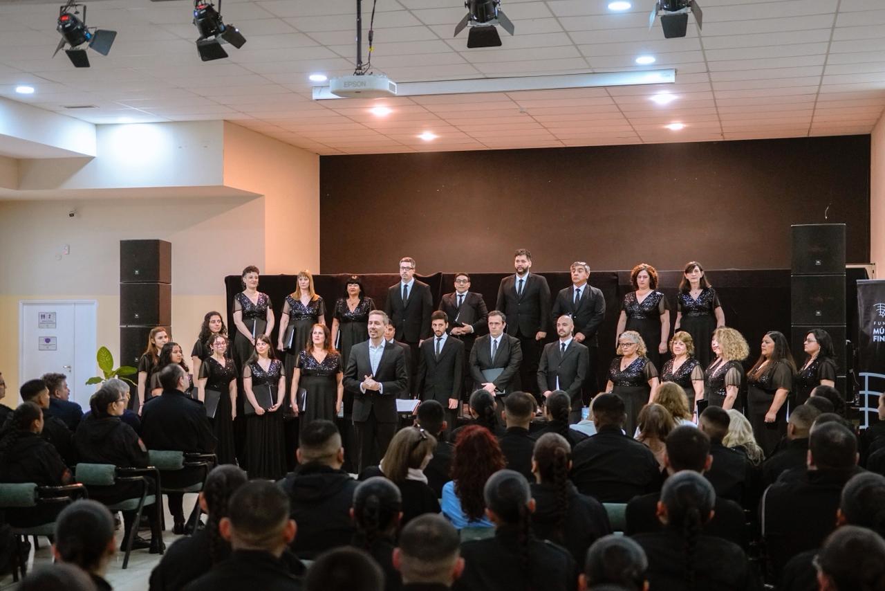 Bajo la dirección del Maestro Pablo Dzodan, el Coro del Fin del Mundo ofreció un repertorio especial preparado para la ocasión, convirtiendo la velada en un regalo cultural para todos los asistentes y cerrando una celebración que reforzó los lazos entre la institución policial y la sociedad a la que sirve.