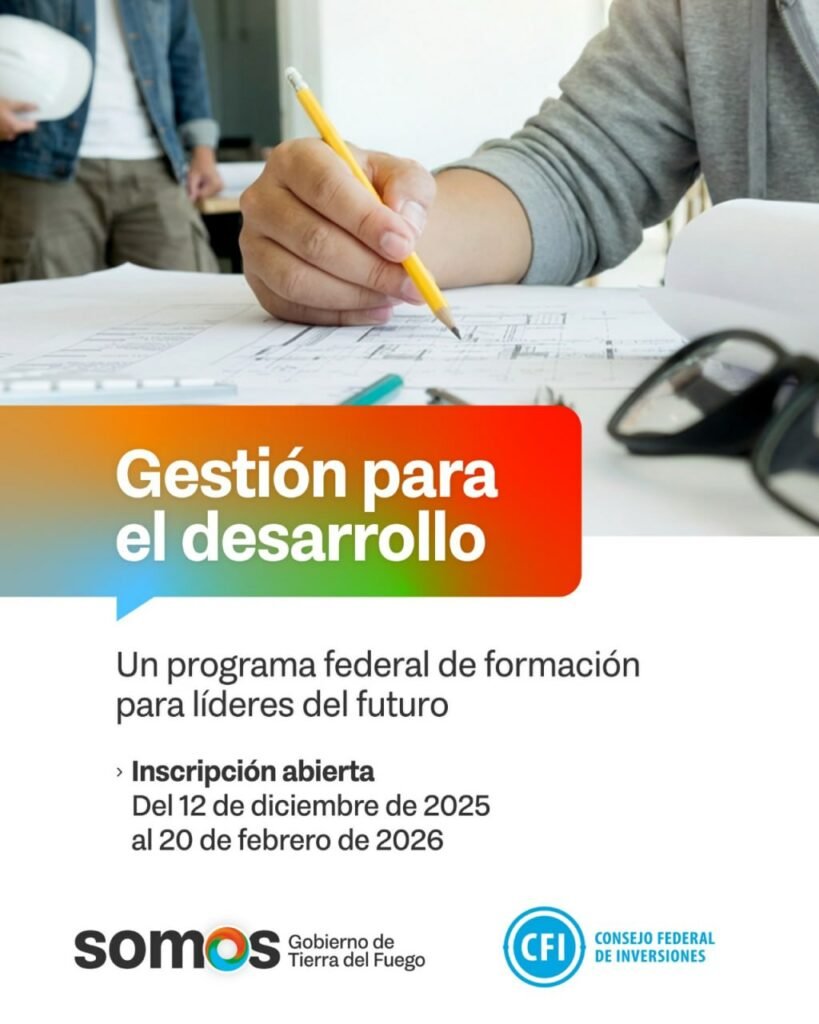 El IPAP y el CFI lanzaron una nueva edición del Programa Federal de Formación Gestión para el Desarrollo, destinado a jóvenes profesionales de todo el país. La inscripción estará abierta hasta el 20 de febrero. La Agencia de Innovación de Tierra del Fuego, a través del Instituto Provincial de Administración Pública (IPAP), junto a la […]
