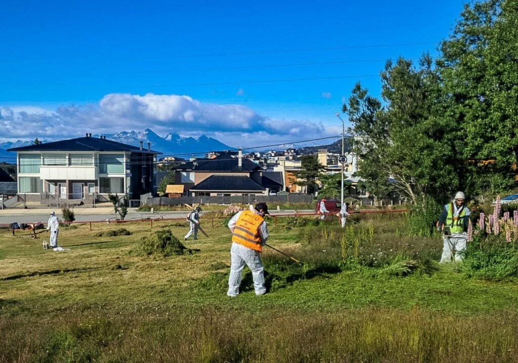 Mantenimiento urbano en Ushuaia: corte de pasto en plazas y barrios clave de la ciudad