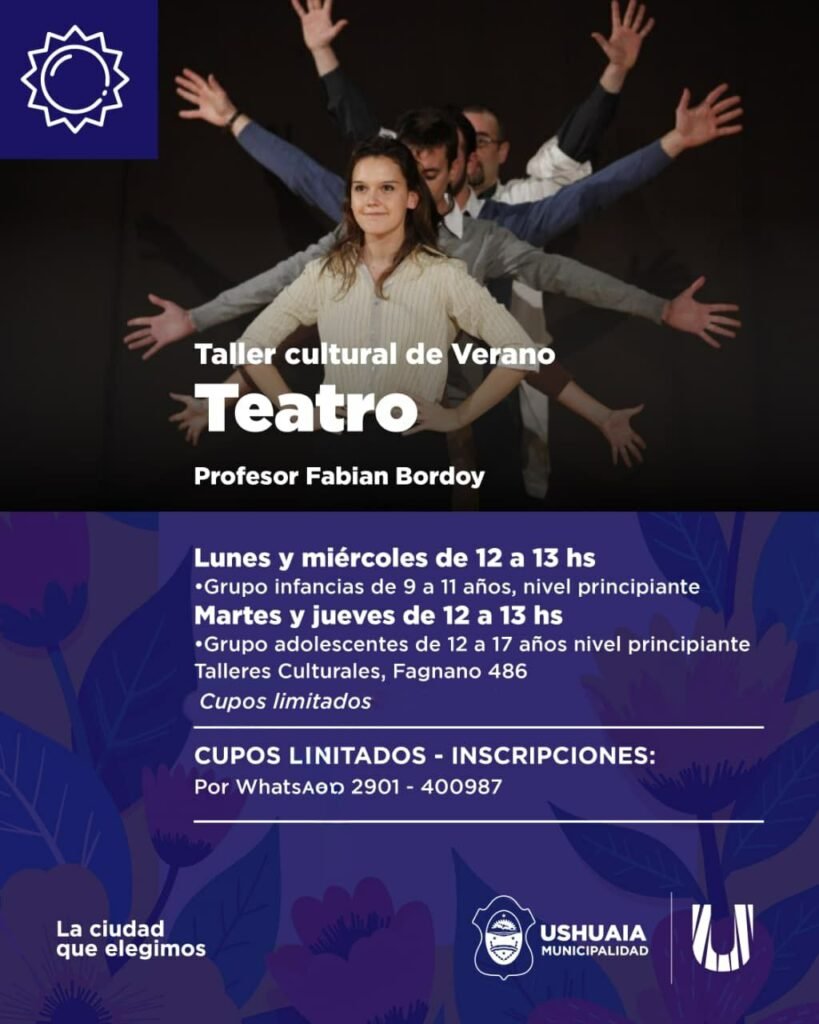 La Secretaría de Cultura municipal amplía su oferta con talleres de fanzine, escultura, pintura, teatro y teclado en los espacios de Fagnano 486. Las inscripciones se realizan vía WhatsApp. Ushuaia, febrero de 2026. – Con el objetivo de enriquecer la agenda estival, la Secretaría de Cultura y Educación de la Municipalidad de Ushuaia lanzó una nueva tanda de talleres […]