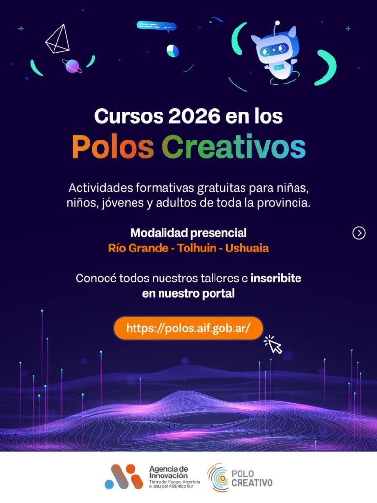 Desde el 9 de febrero, la plataforma online permite anotarse en más de 15 talleres de programación, IA, robótica y diseño. Cursos gratuitos, presenciales y virtuales, en Río Grande, Tolhuin y Ushuaia. Se abren las inscripciones para los talleres anuales de los Polos Creativos en toda Tierra del Fuego A partir de este lunes 9 […]