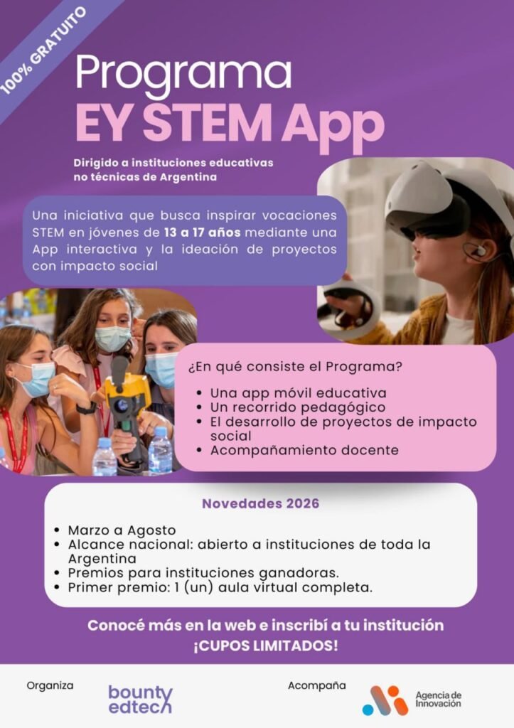 La Agencia de Innovación y Bounty Edtech lanzan el programa gratuito EY STEM App para estudiantes fueguinos. La iniciativa busca desarrollar habilidades digitales y fomentar la participación en ciencia, tecnología, ingeniería y matemáticas. La Agencia de Innovación de Tierra del Fuego anunció la implementación del Programa EY STEM App, una iniciativa gratuita destinada a estudiantes […]