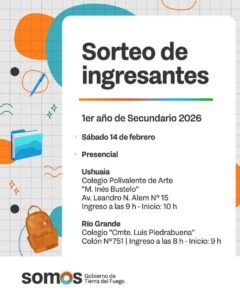 Educación Educación de Tierra del Fuego confirmó colegios con vacantes y detalles del sorteo para ingresantes a 1° año 2026 5 febrero, 2026