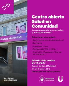 Salud Salud gratuita y sin turno: Ushuaia realiza una jornada abierta este sábado en el Centro de Salud Municipal 16 octubre, 2025