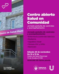 Salud Más de 130 atenciones gratuitas en una nueva jornada de “Centro Abierto” de Salud en Ushuaia 30 noviembre, 2025