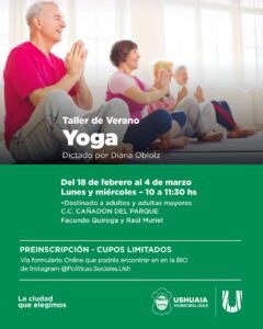 Ushuaia Taller de yoga gratuito para adultos mayores en Ushuaia: inscripciones abiertas en el Centro Cañadón del Parque 14 febrero, 2026