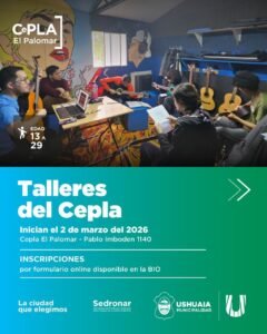 Ushuaia ¡En Ushuaia! Abren la inscripción a los talleres gratuitos 2026 del CePLA El Palomar para jóvenes 2 marzo, 2026