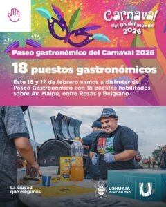 Ushuaia Carnaval del Fin del Mundo 2026: confirmaron los puestos del Paseo Gastronómico en Ushuaia 12 febrero, 2026