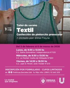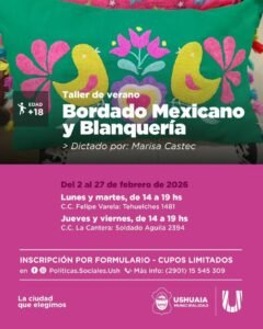 Ushuaia Taller de verano gratuito de Bordado Mexicano y Blanquería en Ushuaia: inscripciones abiertas 16 enero, 2026