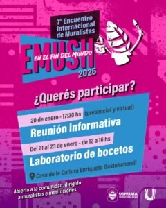 Ushuaia 7° Encuentro Internacional de Muralistas en Ushuaia: abren inscripción y lanzan laboratorio de bocetos 16 enero, 2026