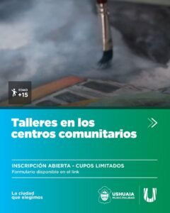 Ushuaia Últimos días para inscribirse: la Municipalidad de Ushuaia abre la inscripción a más de 20 talleres gratuitos en los centros comunitarios 22 marzo, 2026