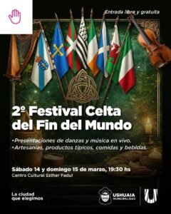 Ushuaia Vuelve el Festival Celta del Fin del Mundo a Ushuaia: será con entrada gratuita en el Centro Cultural Esther Fadul 9 marzo, 2026