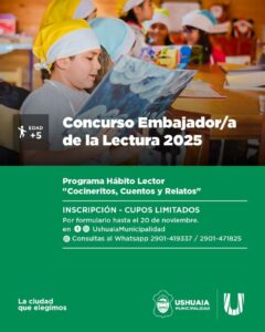 Ushuaia Ushuaia lanza el concurso “Embajador/a de la Lectura 2025” para niños y niñas 24 octubre, 2025