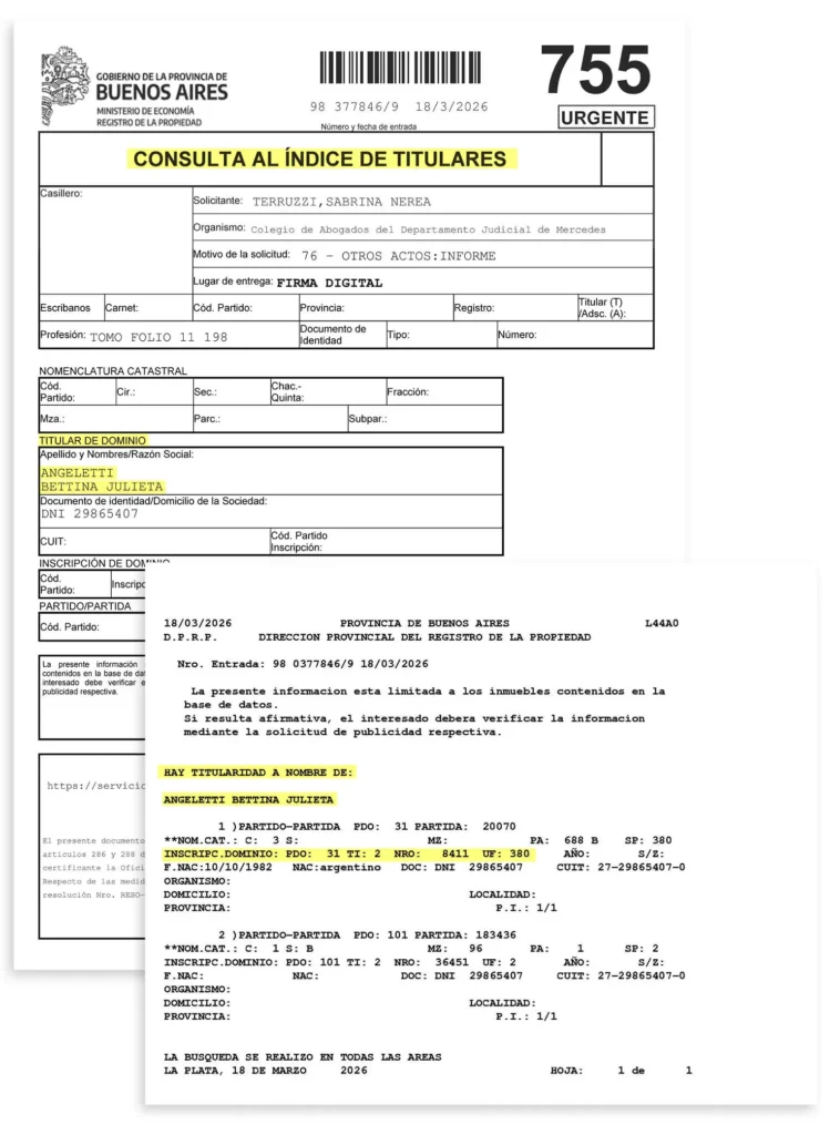 - Oficios al Registro de la Propiedad Inmueble de la Provincia de Buenos Aires.