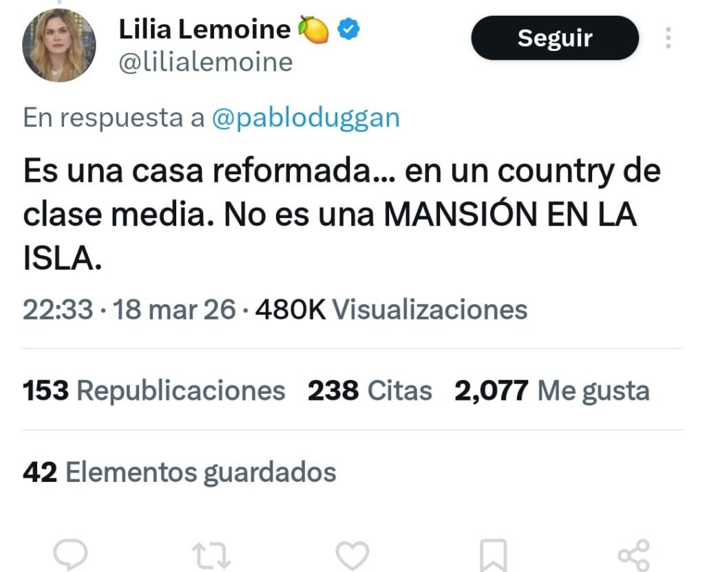En medio del escándalo, el presidente Javier Milei salió a respaldar a Adorni y lo ratificó en su cargo, desmintiendo versiones sobre un posible recambio . La única voz oficialista que se refirió al tema fue la diputada Lilia Lemoine, quien buscó minimizar el hecho: “Es una casa reformada… en un country de clase media. No es una mansión en la isla”, en clara alusión a Pagano, que reside en el lujoso barrio Nordelta .