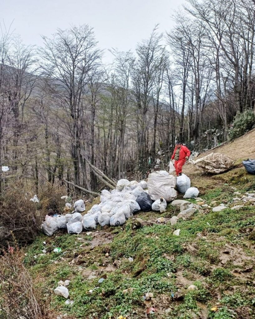 Ushuaia y Agrotécnica Fueguina limpian residuos volados por el viento cerca del río Olivia