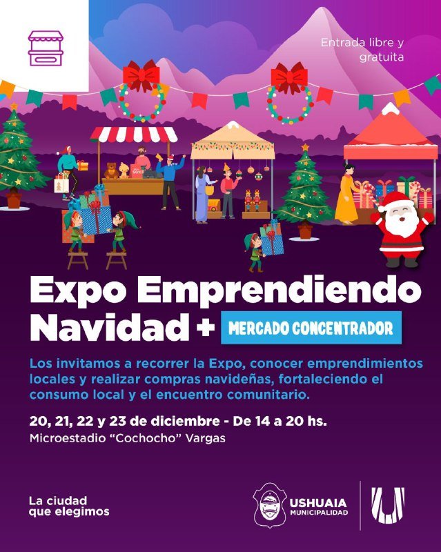 Del 20 al 23 de diciembre, el microestadio Cochocho Vargas albergará la Expo Emprendiendo Navidad y el Mercado Concentrador. Horario: 14 a 20 hs. Productos locales, regalos y alimentos. USHUAIA PREPARA SU FERIA NAVIDEÑA: EMPRENDEDORES LOCALES Y MERCADO CONCENTRADOR EN EL MICROESTADIO La Municipalidad organiza la “Expo Emprendiendo Navidad” junto al Mercado Concentrador del 20 […]