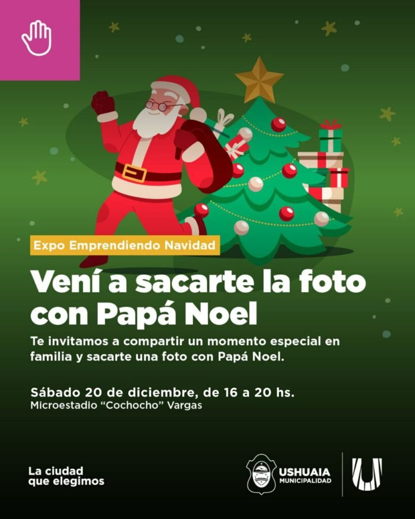 Este sábado 20, la Municipalidad de Ushuaia realizará una actividad gratuita para toda la familia: fotos con Papá Noel en la Expo “Emprendiendo Navidad”, en el Microestadio “Cochoco” Vargas. La Municipalidad de Ushuaia invita a vecinos y vecinas a participar de una propuesta especial para toda la familia: sacarse una foto con Papá Noel en […]