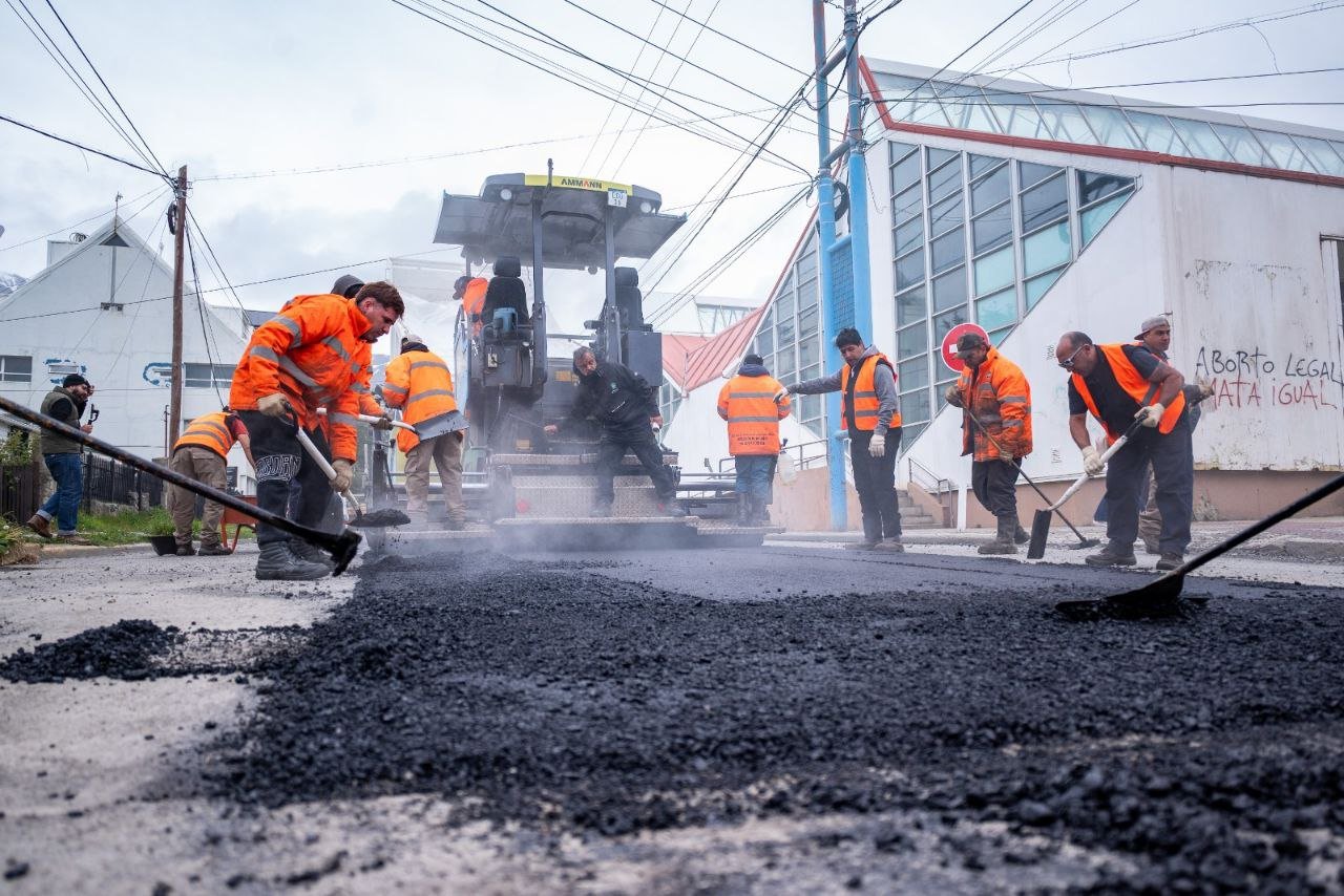 La Municipalidad de Ushuaia ejecutó nuevas obras del Programa de Recuperación Vial, con 70 toneladas de asfalto colocadas y 500 m² de calzada mejorada en 12 de Octubre y Fitz Roy.