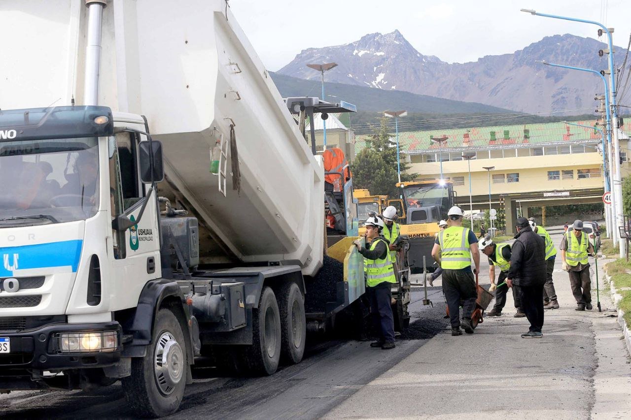 La Municipalidad de Ushuaia ejecutó este domingo trabajos de repavimentación en la intersección de las calles Damiana Fique y Gobernador Paz, como parte del Programa de Recuperación Vial correspondiente a la temporada de verano 2026.